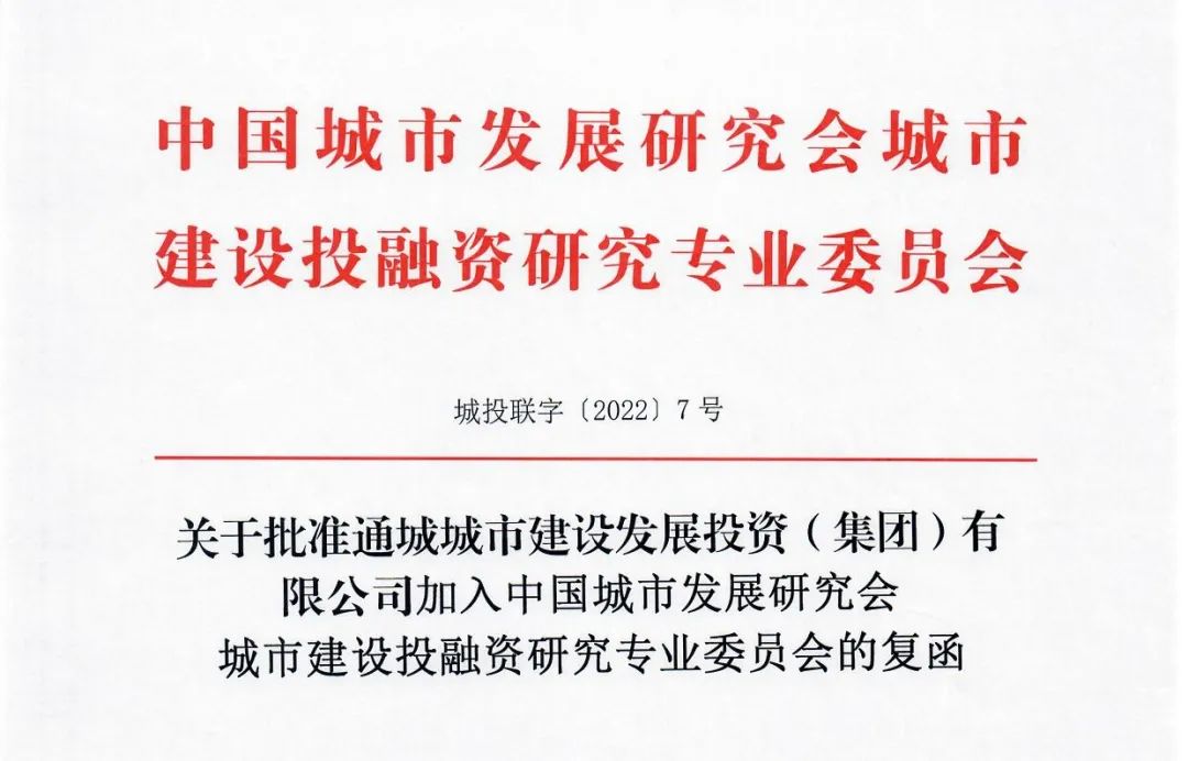 近日,中國(guó)城市發(fā)展研究會(huì)城市建設(shè)投融資研究專業(yè)委員會(huì)(簡(jiǎn)稱“全國(guó)城投協(xié)會(huì)”)發(fā)來(lái)復(fù)函,批準(zhǔn)通城城發(fā)集團(tuán)加入全國(guó)城投協(xié)會(huì)。根據(jù)全國(guó)城投協(xié)會(huì)章程第一條:中國(guó)城市建設(shè)投融資研究會(huì)是全國(guó)地...